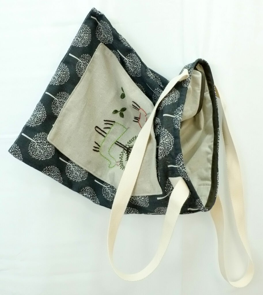 He diseñado estas bolsas de lino pensando en que ese arte no tiene que estar solo en el monte, sino en tu día a día. Por eso les he puesto este bolsillo exterior bordado:
